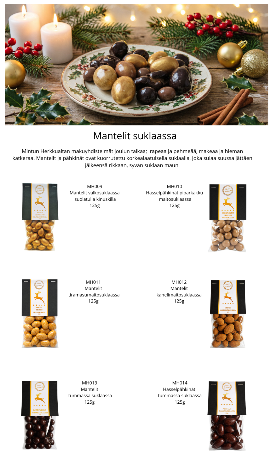 • Joulumantelit ja pähkinät suklaassa