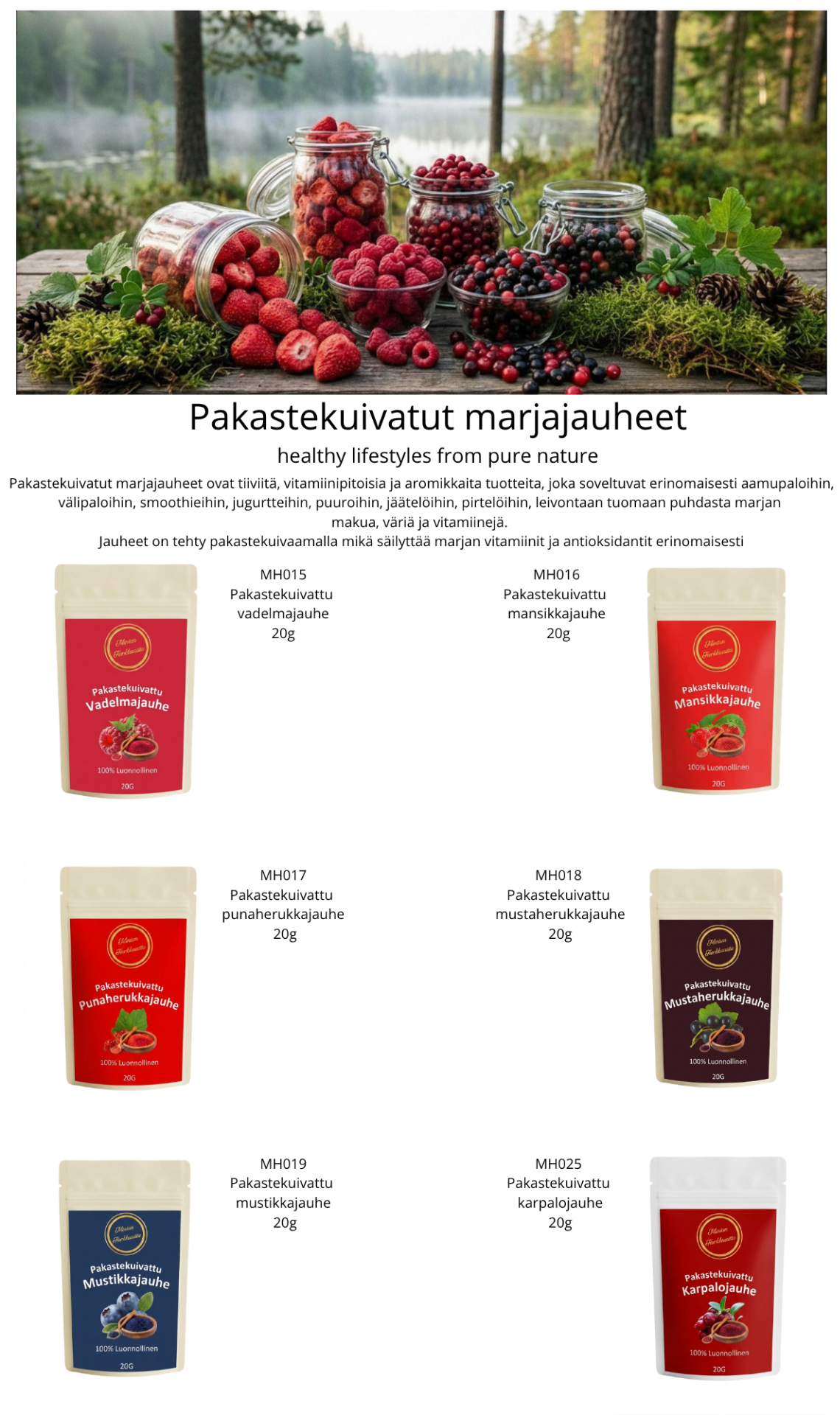 • Pakastekuivatut marjajauheet